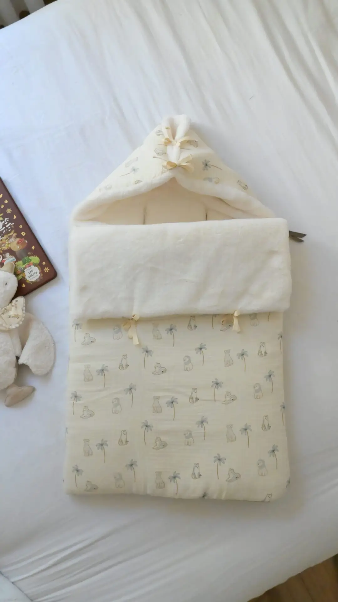 | Intérieur nid d'ange | Gaze blanc cassé, gaze écru, Minky blanc, Minky chocolat, Minky ecru, Minky gris, Minky layette, Moumoute écru, Fourrure poil ras |