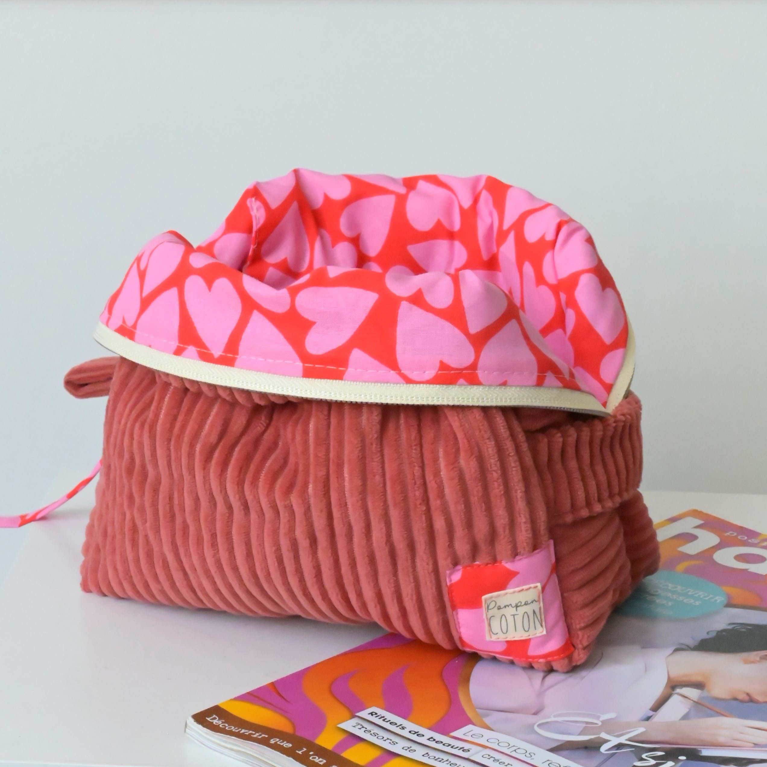 La trousse grand format toute cosy avec son velours tout doux et son intérieur plein d’Amour !